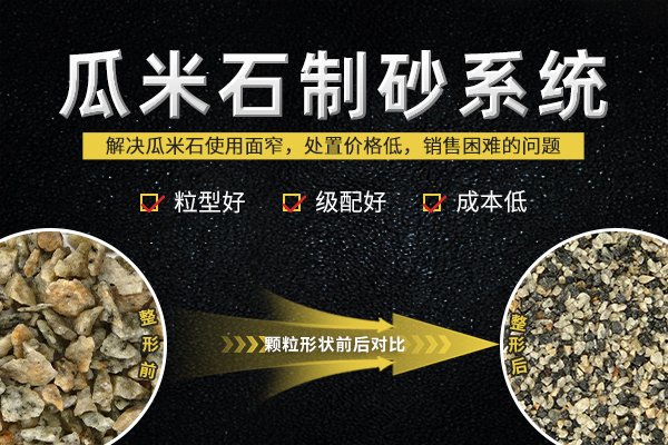 很多石料厂都有大量的废弃瓜米石大小一样的石子,这些小石子通常具有用面窄,处置价格低,销售困难的问题,由于石子颗粒粒度小,具有处置破碎困难,处置成本高,细筛分困难等因素,那么如何处理废弃瓜米石成为砂石场老板的难题。