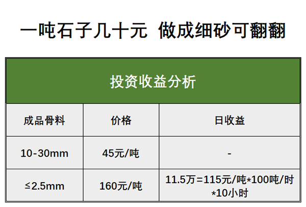 2017年初,河南省荥阳市贾峪镇一采石场业主看到了当地市场2.5mm以下细砂市场紧缺,价格一再上涨,几乎可以到达200元/吨的市场机遇,这类细砂主要供应砂浆站,果断决定进入该领域——以一吨45元的价格从当地其它石料场购买10-30mm的石子,以郑州888集团welcome大厅公司生产的YM预磨机为主机,对10-30mm的石子进行制砂,成品为2.5mm以下的细砂,含粉率在10%以下,吨售价在160元/吨,而且供不应求。