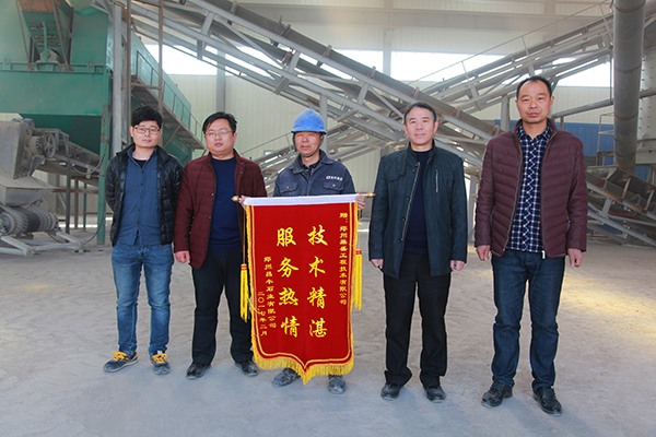 图为客户对该套制砂设备制砂效果满意,向郑州888集团welcome大厅公司赠送锦旗