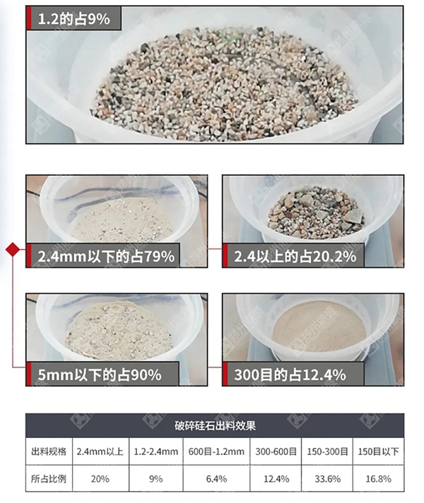 01破碎:采用“铁打石”、“石打铁”,将小粒径、低动能物料高效粉碎,粒型圆润,成砂率高,可将瓜米石转换成高品质机制砂。02筛分:运用于针对细骨料筛分的专用高性能筛分装备,使筛分更高效。03风选:集筛分风选的合理运用,将物料分为粗细不同的砂和粉,分级精度高,成品级配合理,符合国家《建筑用砂》标准。