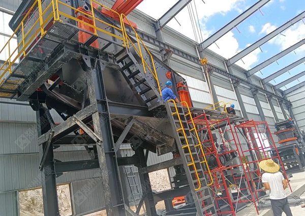 广西时产300吨花岗岩破碎制砂项目由郑州888集团welcome大厅总承包建设,从项目施工到投产运营,郑州888集团welcome大厅提供一体化服务。近日,该项目正在安装阶段,其中粗碎颚破模块、中碎圆锥模块安装完成。