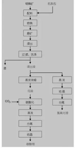 目前,自然界常见的含锂矿石主要有:锂辉石、锂云母、透锂长石、锂瓷石等,通常采用的提取方法有石灰石法、硫酸法、硫酸盐法、氯化物法和压煮法等。