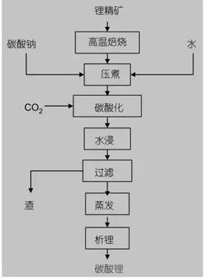 优点:实用性很强,几乎可用于所有锂矿物,缺点是浸出液中锂含量低,蒸发能耗大,锂回收率较低。