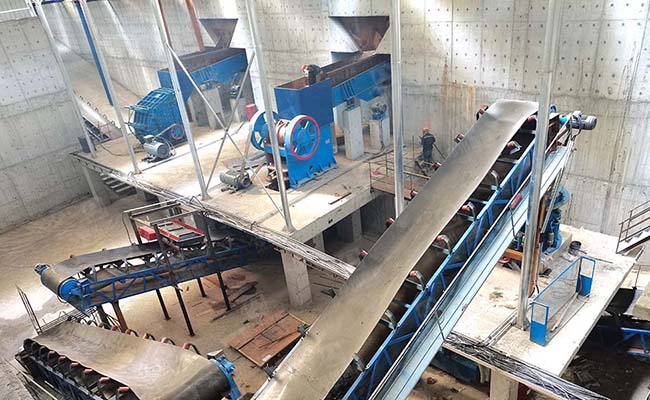 配置一:给料机+颚破+反击破+振动筛+制砂机+输送机