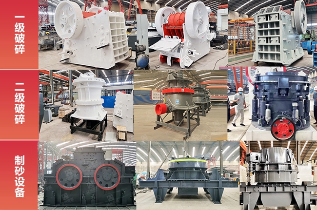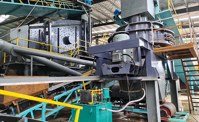 配置二:给料机+颚破+圆锥破+振动筛+制砂机+洗砂机+输送机
