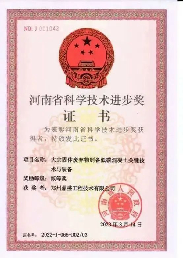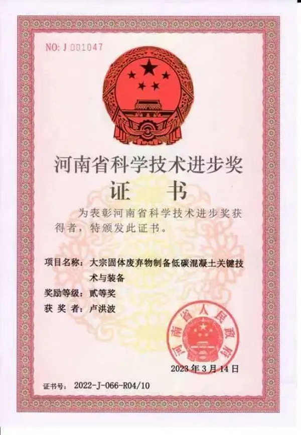 3月24日,河南省人民政府发布《关于2022年度河南省科学技术奖励的决定》。根据《河南省科学技术奖励办法》(省政府令第57号)规定,经省政府常务会议审议,特别对2022年度河南省科学技术杰出贡献奖、河南省自然科学奖、河南省技术发明奖、河南省科学技术进步奖等进行表彰奖励。其中由郑州888集团welcome大厅联合华北水利水电大学、中建七局第四建筑有限公司共同完成的“大宗固体废弃物制备低碳混凝土关键技术与装备”项目,喜获河南省科学技术进步二等奖,填补了郑州888集团welcome大厅在该领域内的空白,为公司在技术创新领域开创新局面。