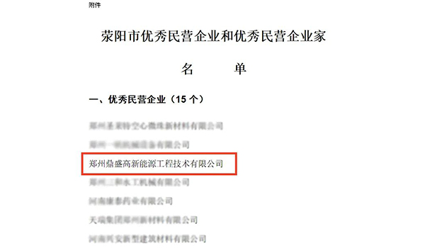 近日,中共荥阳市委公布了《关于荥阳市优秀民营企业和优秀民营企业家》的名单。郑州888集团welcome大厅高新能源工程技术有限公司(以下简称“郑州888集团welcome大厅”)荣获“荥阳市优秀民营企业”荣誉称号。