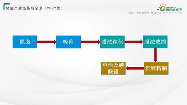 多在工业试验阶段,利用多种类型的滤膜,逐步将卤水中杂质成分分离, 并富集浓缩锂后化学沉淀锂。优点是对卤水的适应性强,工艺简单、锂的回收率高、选择性好,对环境的影响小;难点在于研发高选择性、低能耗和良好循环性能的滤膜。