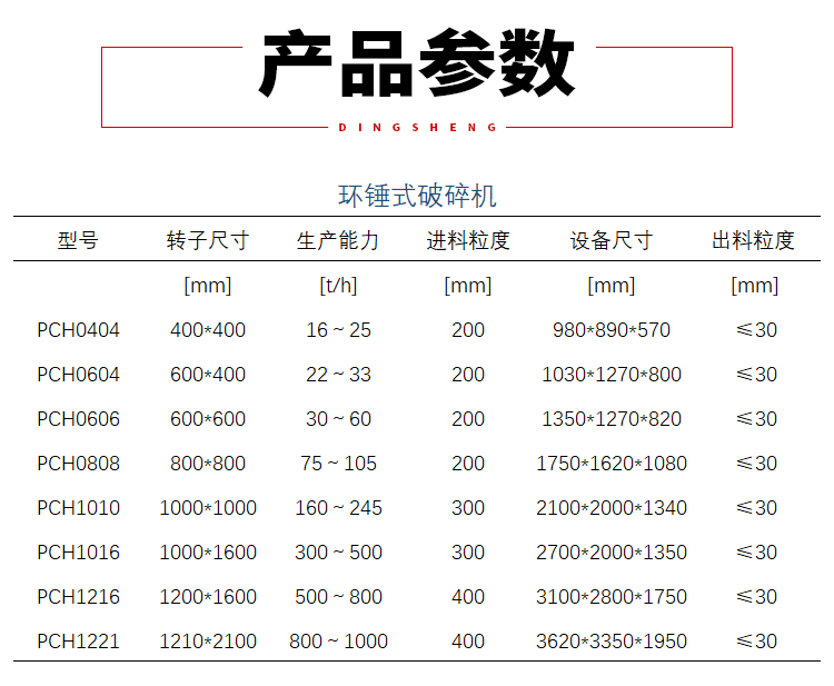 进料粒度:≤600mm